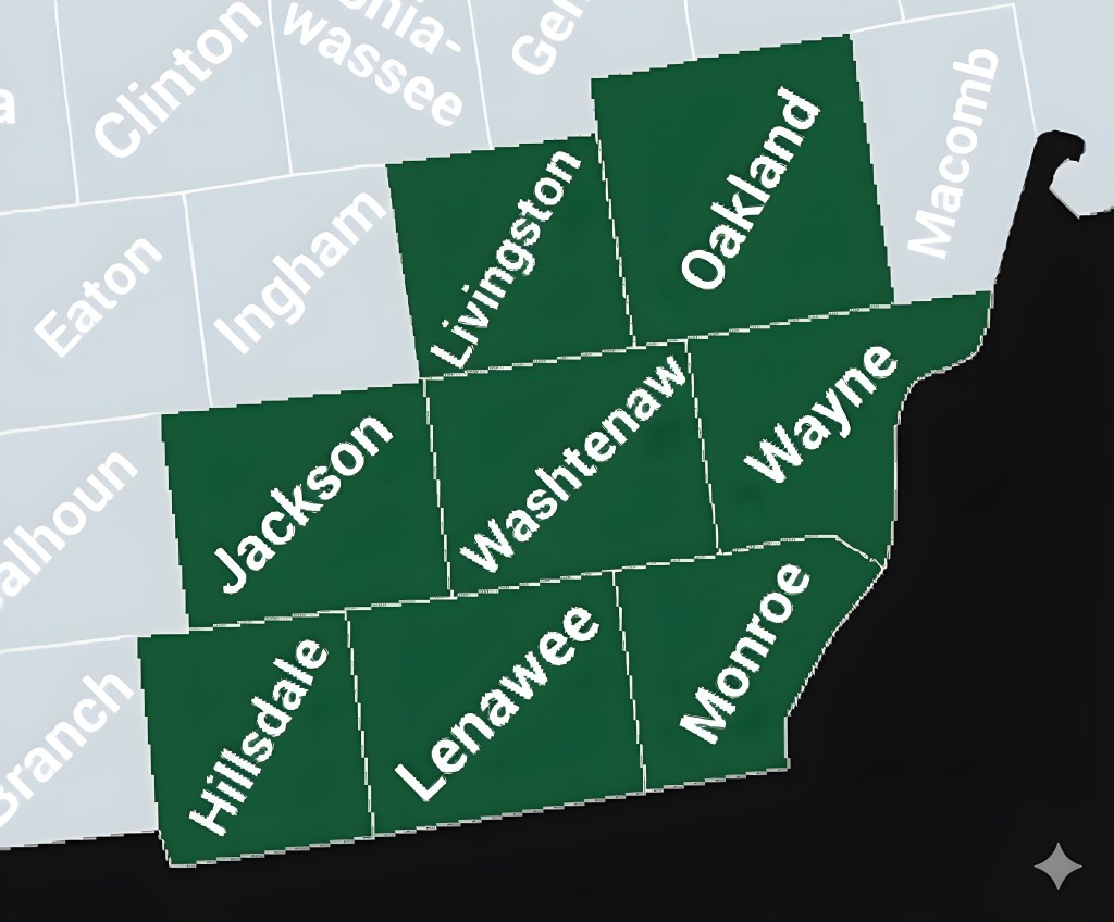 We service across Monroe, Washtenaw, Wayne, Lenawee, Livingston, Oakland, Jackson and Hillsdale Counties